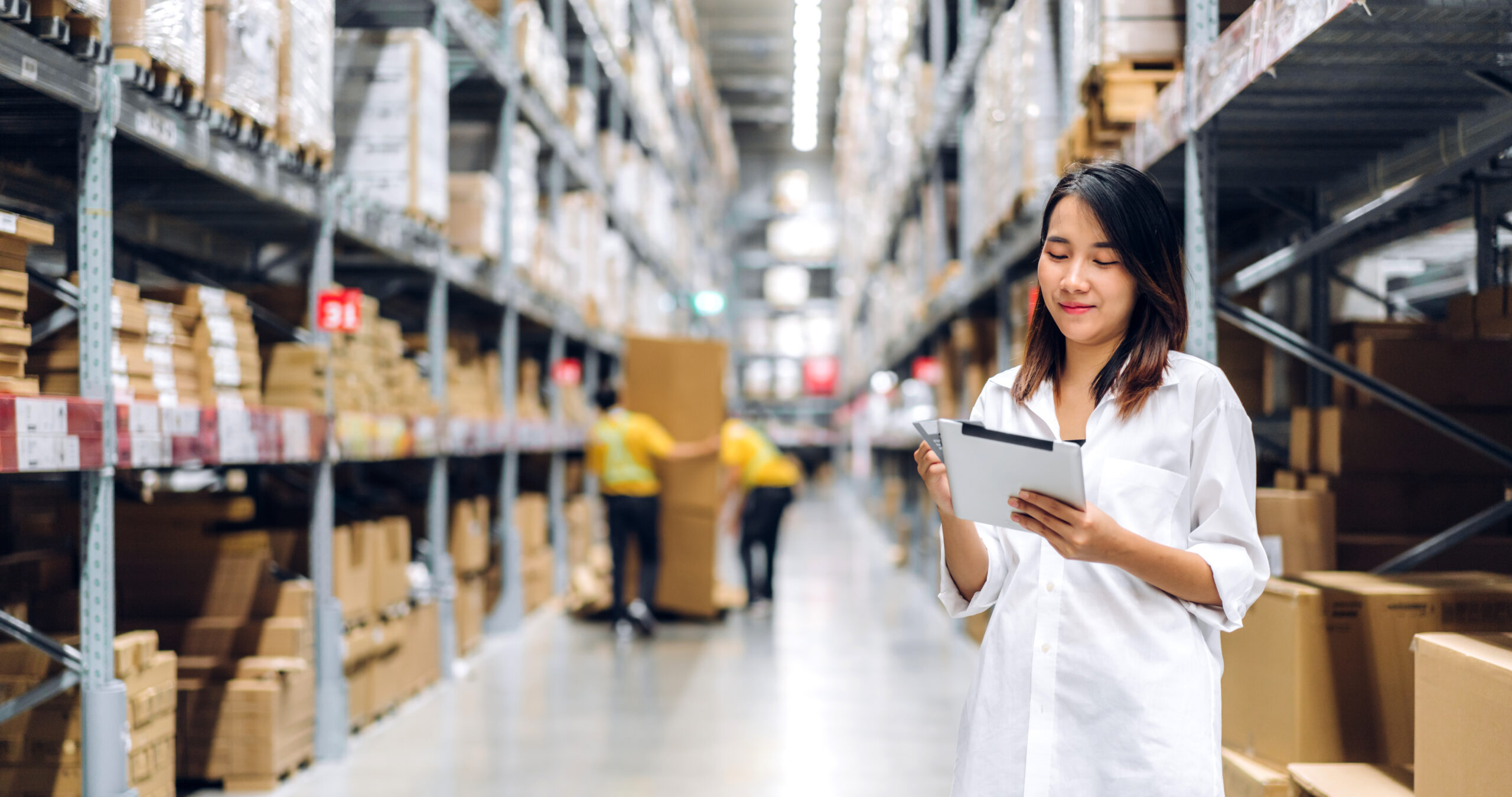 Portrait,Of,Smiling,Asian,Manager,Worker,Woman,Standing,And,Order Original size is 2560 × 1350 pixels